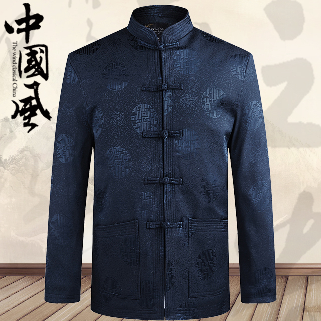 2019 Spring and autumn season middle-aged and elderly men's jacket jacket jacket jacket Chinese style collar dad grandpa great size for ethnic costumes
