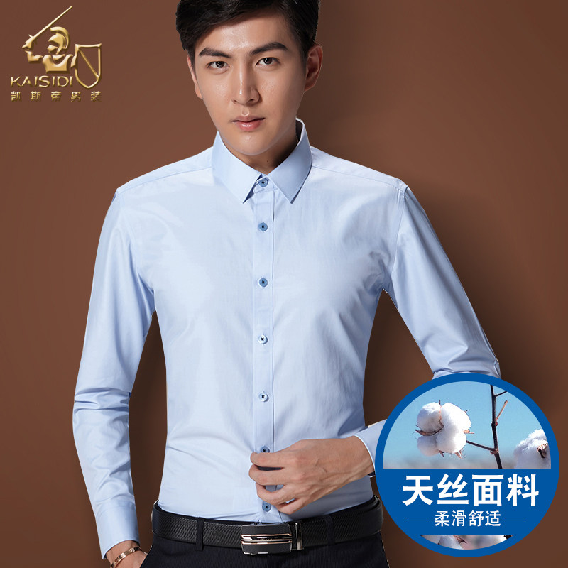 kaisidi light color summer shirt anti-crease ironing pure man long sleeve shirt Korean version sashimi youth positive dress