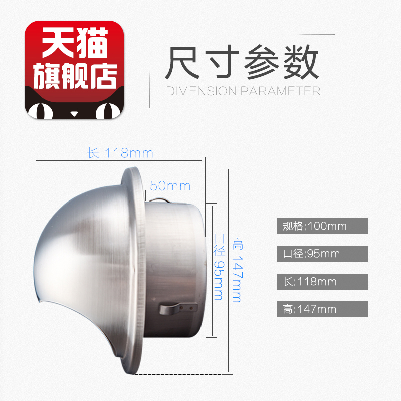Thickened stainless steel outer air port Rain-proof wind cover Dressing Room Kitchen External Wall Vent Outlet 100mm