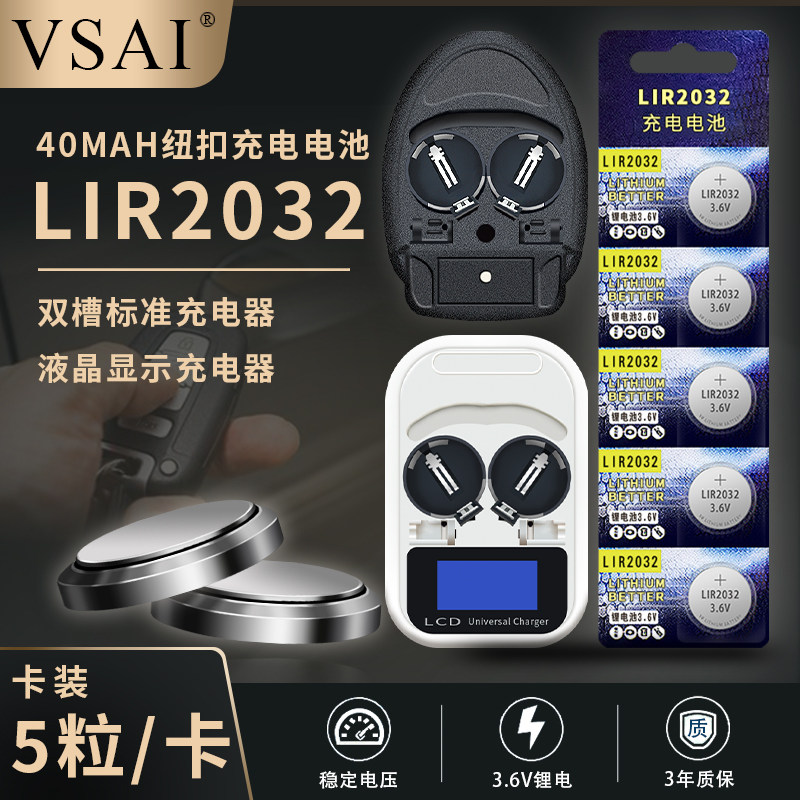 LIR2032 Rechargeable Button Battery 3 6V Smart Charger 2 Cells Battery Set Fitness Sticker Electronic Scale