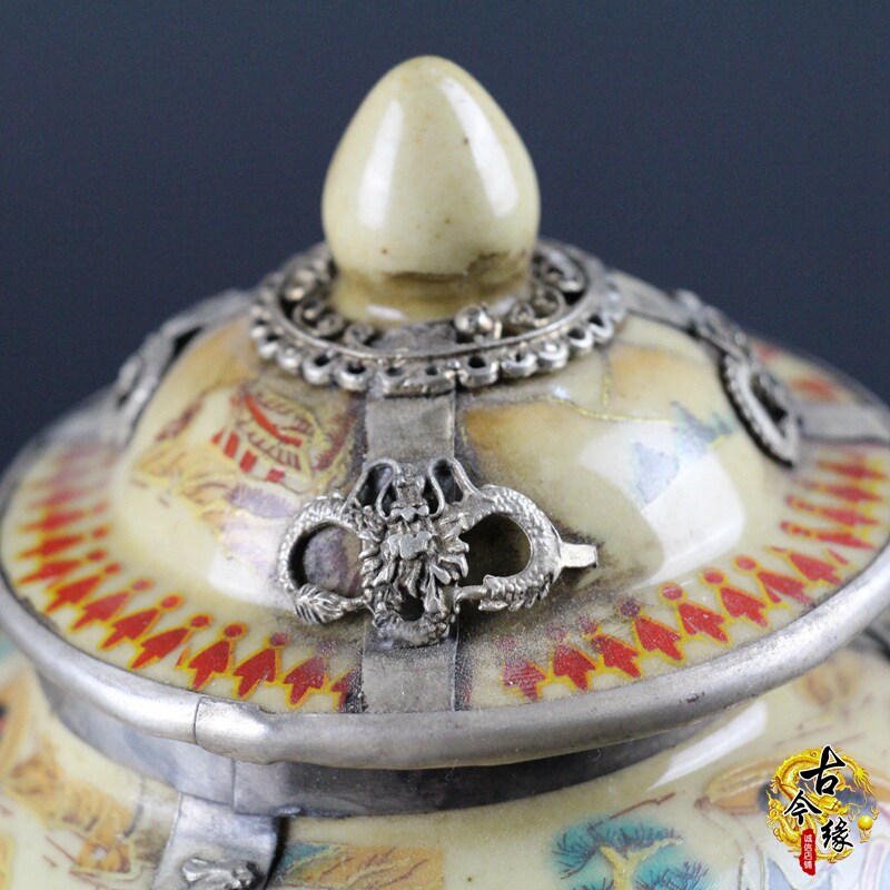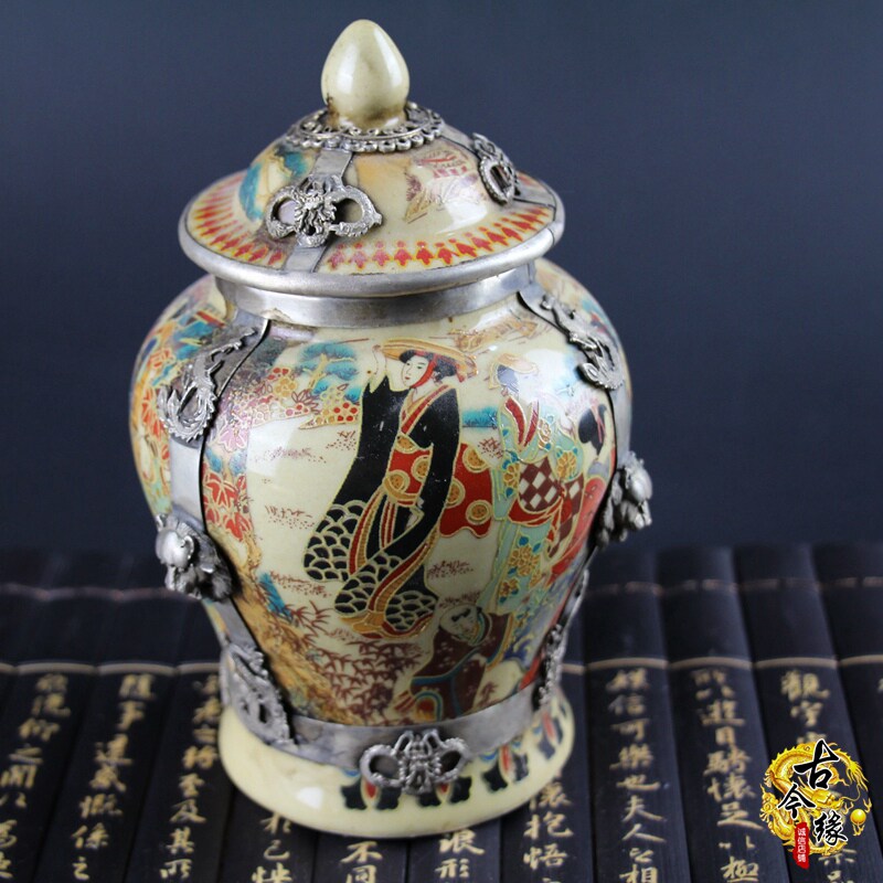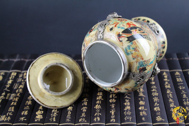Antique vintage old courtyard decoration Porcelain film and television props decoration Antique collection bag silver general tank