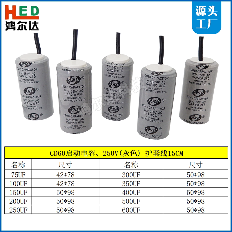 75UF 250V aluminium shell paper core with wire 100UF 250V aluminium shell paper core with wire 150UF 250V aluminium shell paper core with wire 200UF 250V