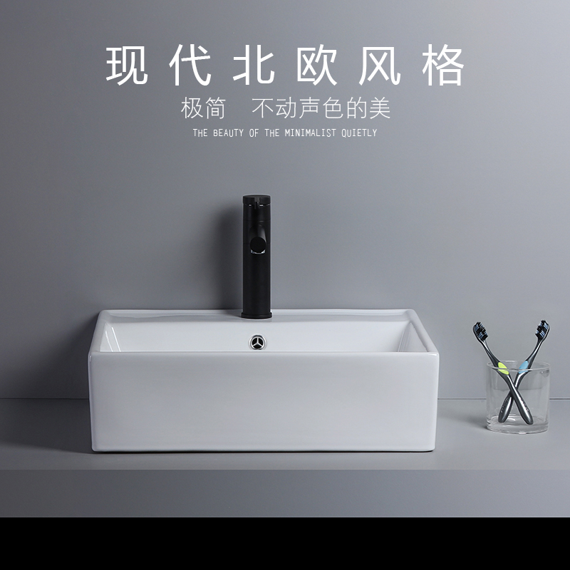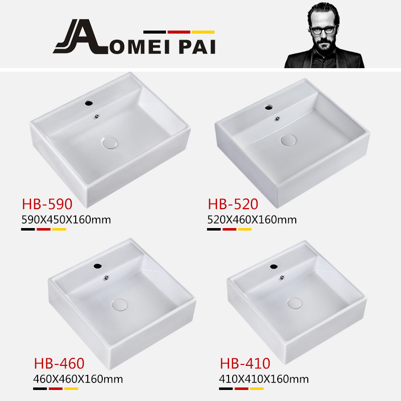 Square countertop basin washbasin balcony washbasin art basin perforated ceramic basin 41 46 52 59 cm