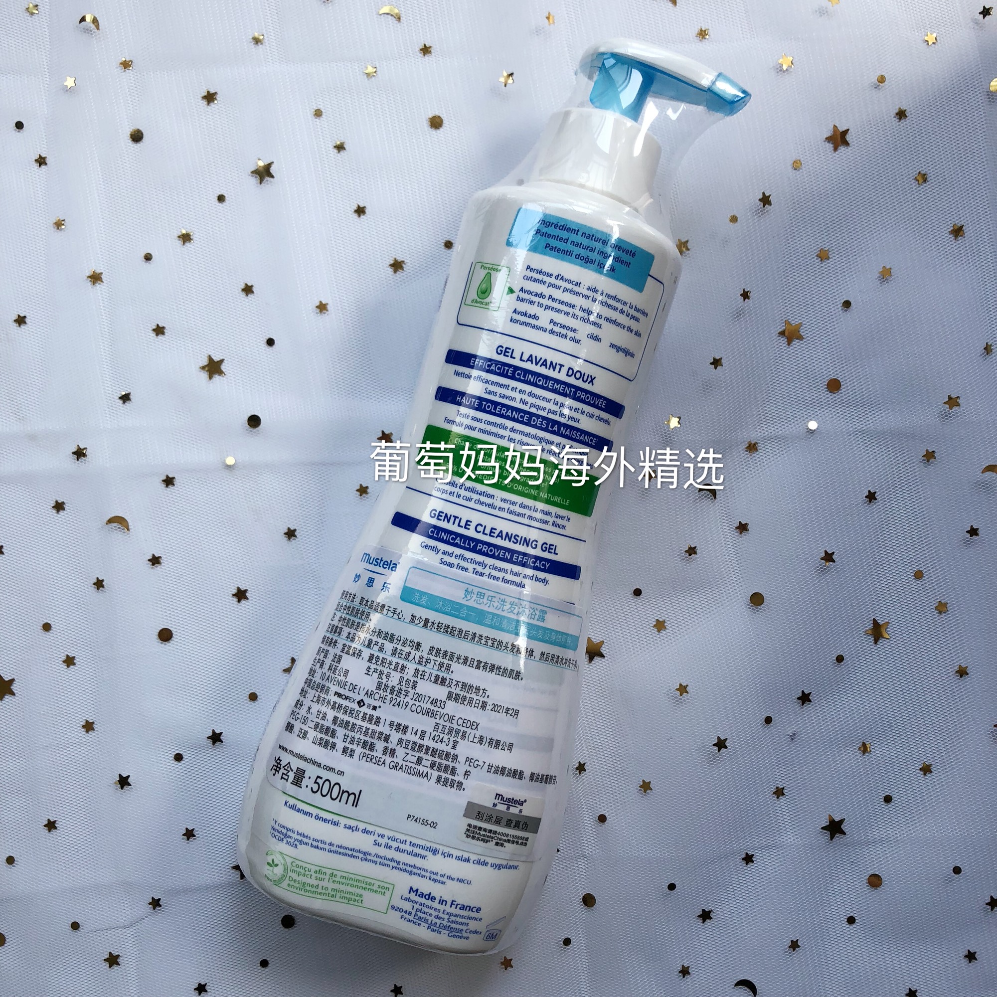 Two-in-one 500ml bonded warehouse for baby baby shower and milk shampoo in French mustela mousse