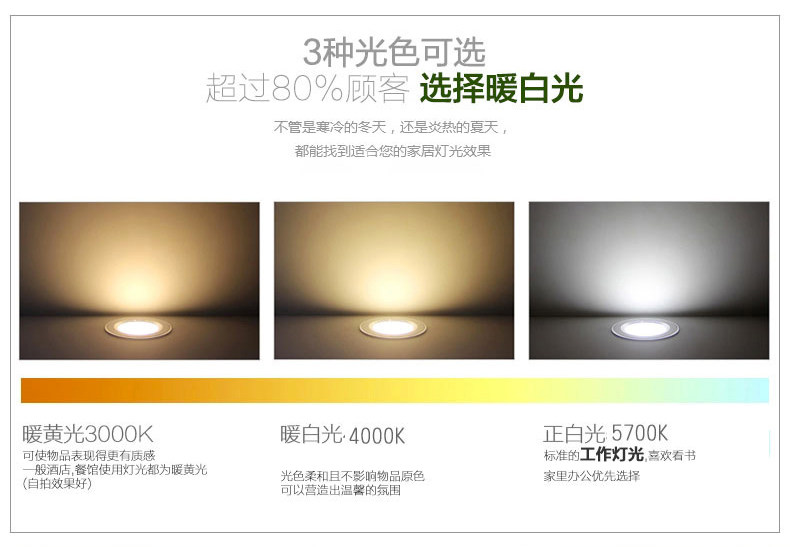 3W boreholes 7-8 cm 7-8 White light 5W boreholes 9-10 cm white light 7W boreholes 9-10 cm white light 9W boreholes 11-12 cm White light 13W boreholes 15