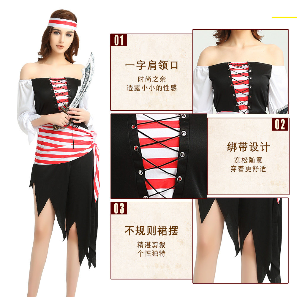 Halloween costume Pirate suit Caribbean adult men and Women Pirate clothes Masquerade party Captain Jack costume