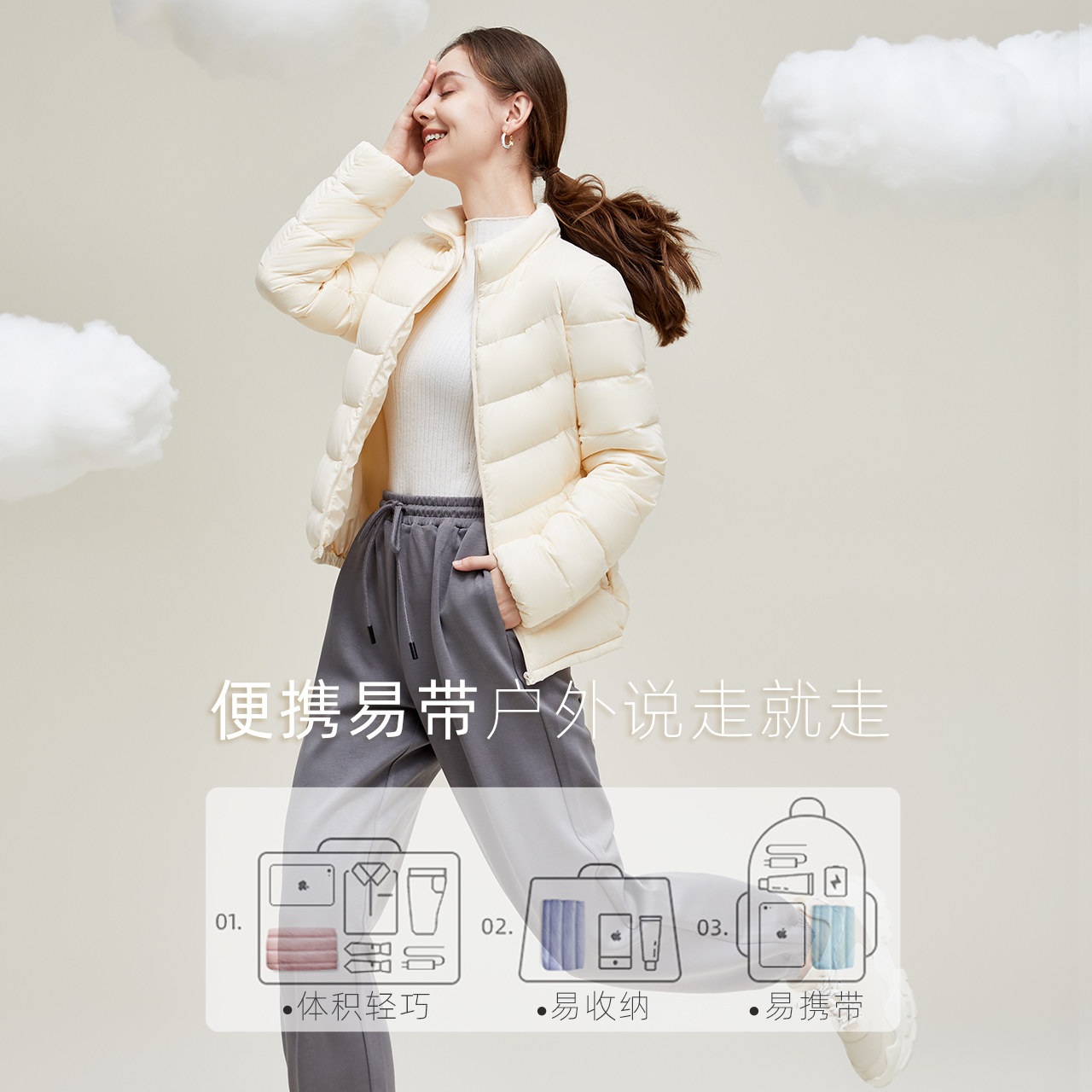 Snow in the fly 2021 new light down jacket women's short slim portable temperament thin casual jacket tide