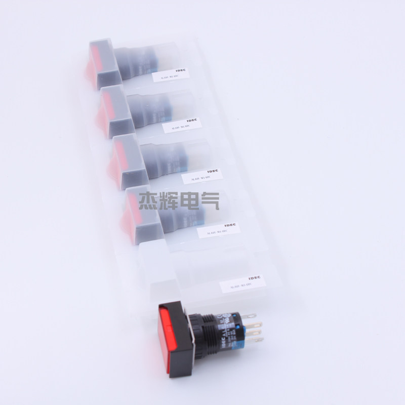 And spring with light button AL6H-M14RC 16mm rectangular 24V self-reset 1 open 1 closed 5 feet