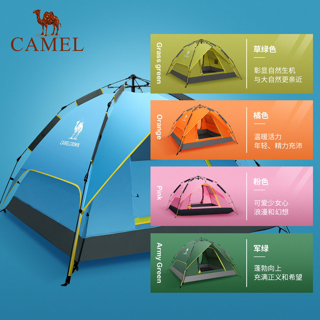 Camel hydraulic tent outdoor 3-4 civil air defense rainstorm family camping automatic speed opening double-layer camping thickening equipment