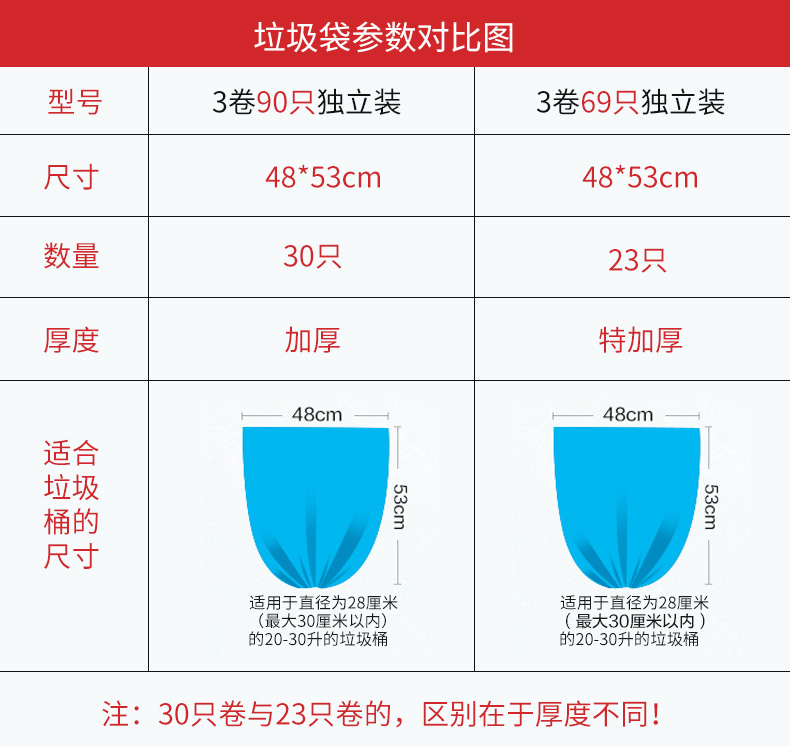 5 rolls of garbage bags 50*60 thickened new material color household medium large plastic bag