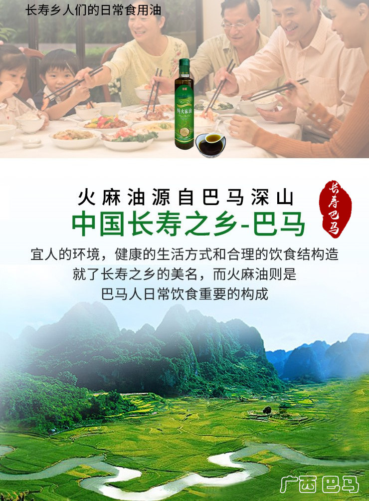 Gui Jing Guangxi Bama Pure Nane Oil Level 1 edible oil 500ml Nanhemp Oil Oil