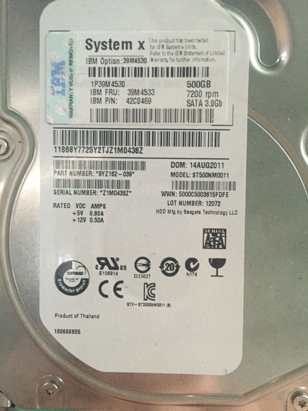 Original unloader IBM 39M4530 39M4533 500G 7 2K SATA 3 5 inch server harddisc