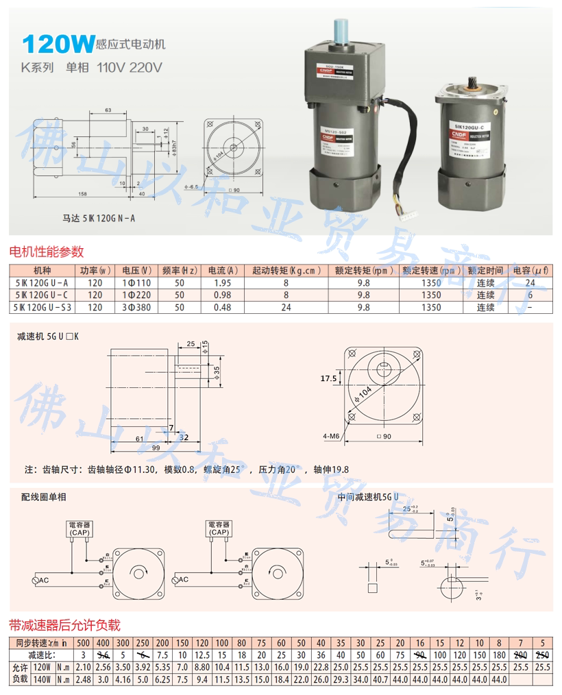 Hong Kong Oriental Electric 120W Speed Motor 220V AC Motor M5120-502 Gear Reducer Motor