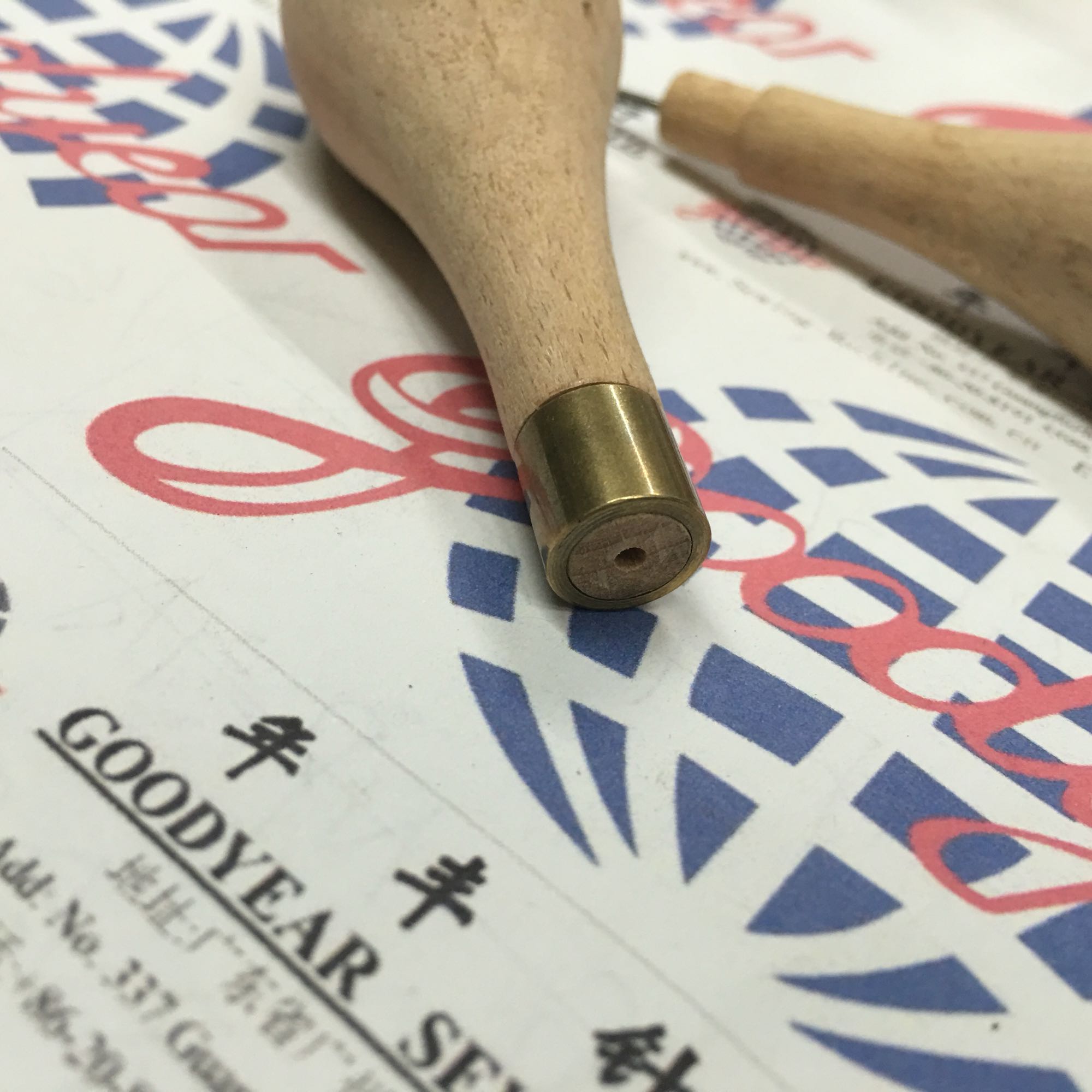 Flat head leather cone (stationary wooden handle) beech wood with copper ring