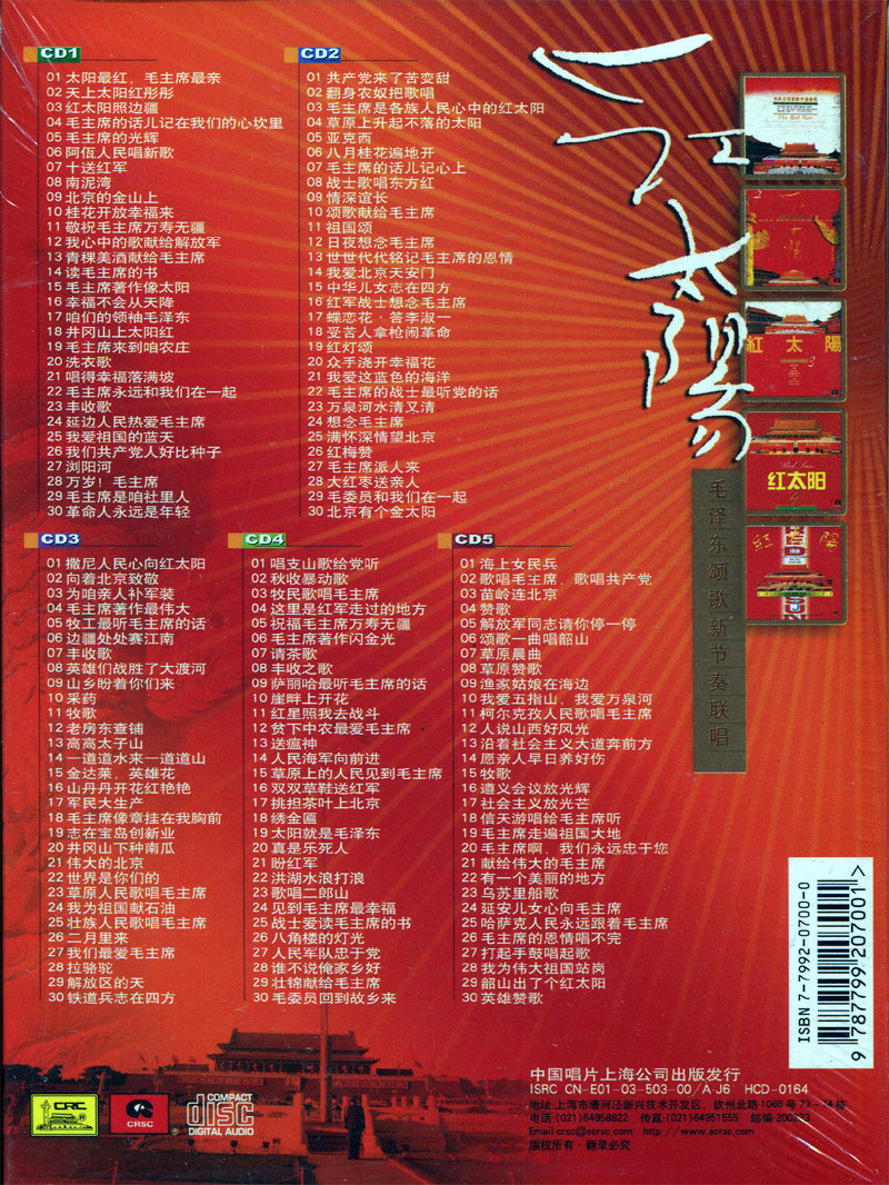 Genuine Revolutionary Song Red Song Mao Zedong Somme Song Song New Rhythm United Singing Red Sun CD ten to send Red Army and other 5 disc clothes