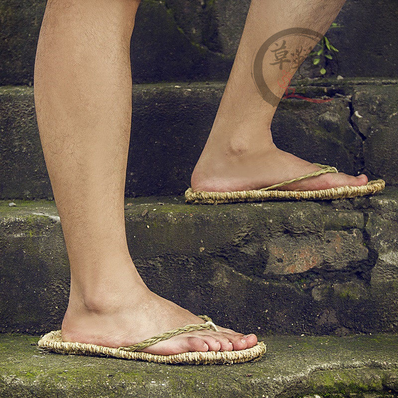 Pure handmade herringbone tugging slippers Slippers Sandals Shoes Summer Indoor Cool Shoes Retro Casual Men Women Vines Weave