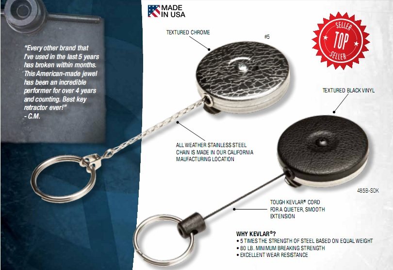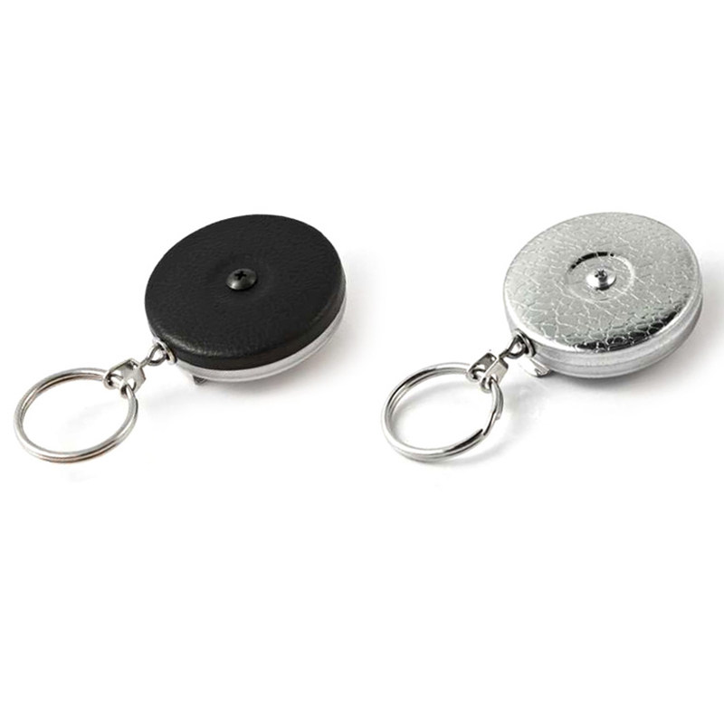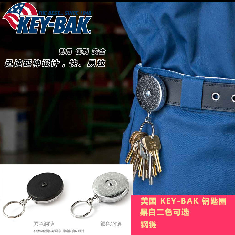 American Key-Bak telescopic keyring black leather face stainless steel gift key buttoned men anti-theft