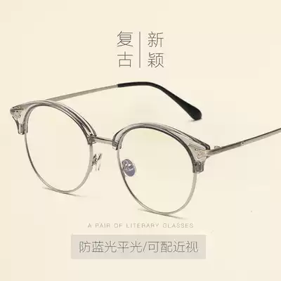 Half-frame ultra-light tr90 myopia glasses frame male tide large frame wood grain glasses temperament female flat mirror with glasses frame