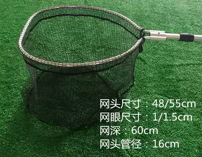 Aluminum alloy retractable folding large fishing net warehouse fishing square 48 * 55cm 45cm depth hanging rubber mesh head