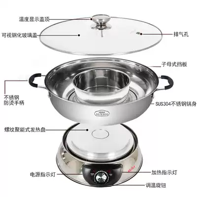 Aijialle mother-in-law pot Mandarin duck hot pot Household plug-in hot pot multi-function shabu-shabu pot Large capacity 4-8 people