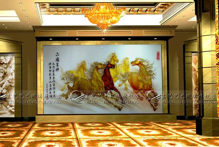 New art glass screen partition Genguan Gangway Corridor Background Wall Craftsmanship Engraving Glass Eight-Toshio Peak