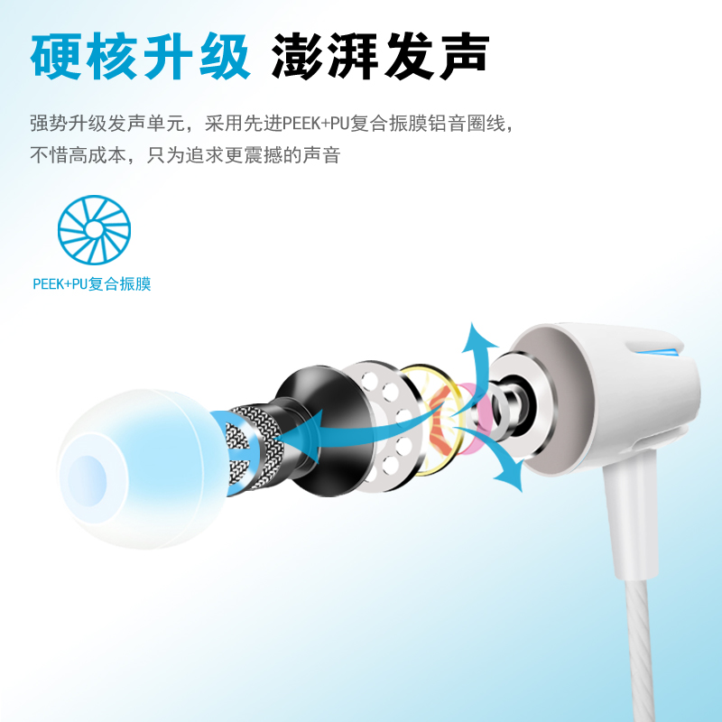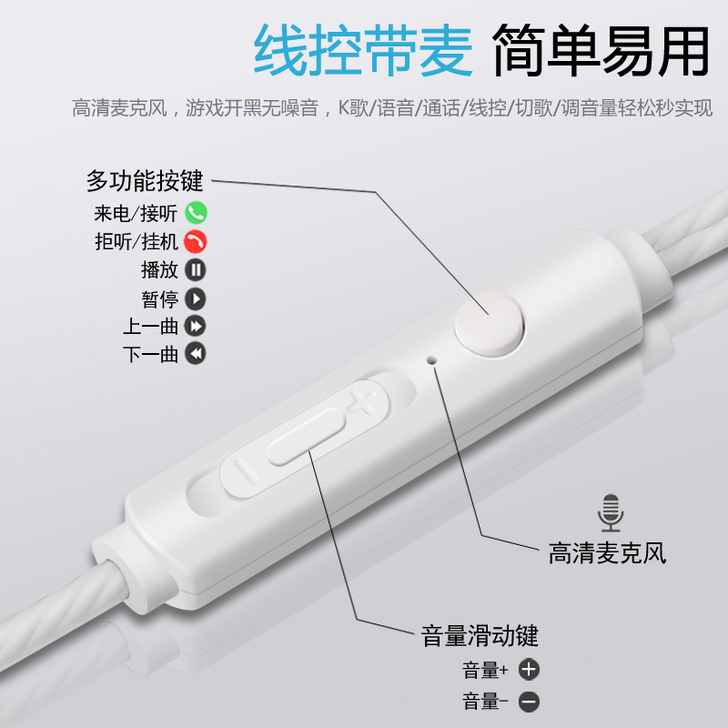 Getherheadphone wired with wheat-in-ear style Universal Apple Android phone Line control k song Heavy bass apply Huawei vivo Xiaomi oppo for boys and girls game eating chicken high sound quality ear hanging monitoring