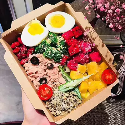 Disposable Kraft paper lunch box fruit salad bento box environmental protection with lid carton packing double grid