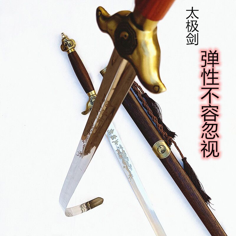 Taijianjian Longquan Semi-hard and semi soft stainless steel integrated male and female morning practice unopened blades Peach Wood Sword Martial Arts Performance Sword Soft