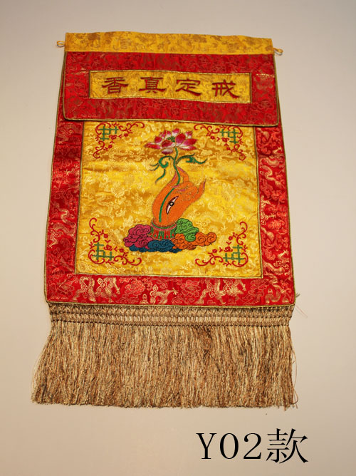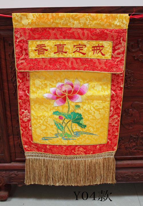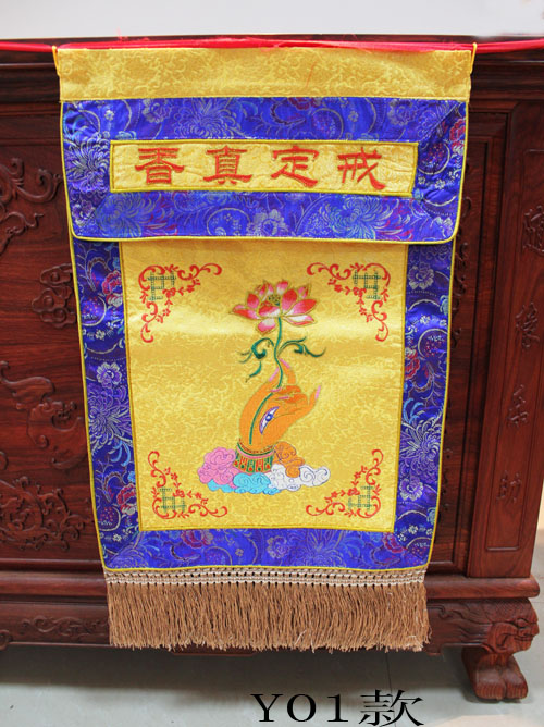 Special price dark flower silk satin ring true fragrance 40cmx69cm Buddhist supplies blue edge upscale embroidered table circumference