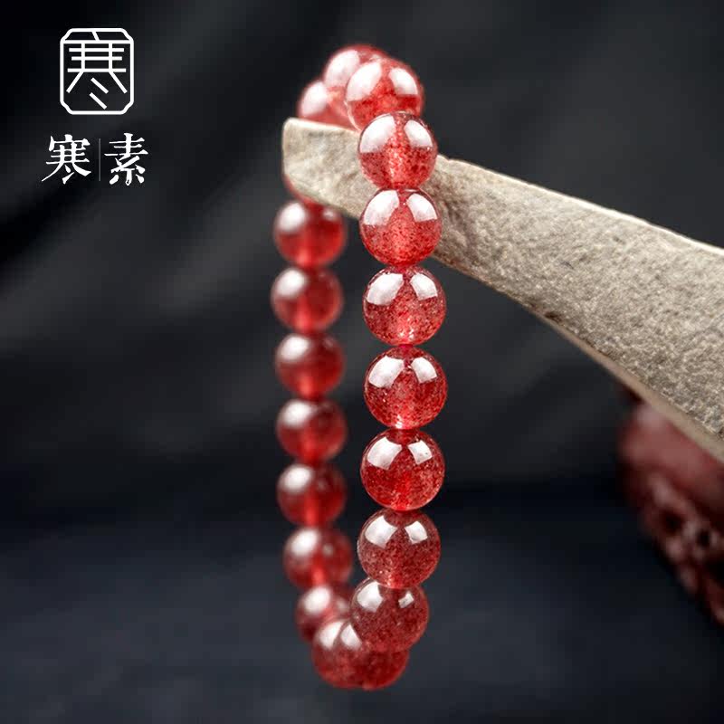 Hansu Natural Pigeon Blood Red Full Seed Strawberry Crystal Crystal Hand Single Circle Female Peach Blossom Ice Seed Full of Meat