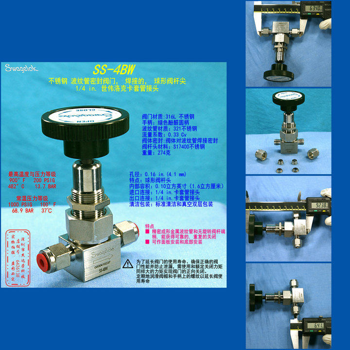 (SS-4BW)Swagelok Bellows Sealed Valve Ball Stem Tip 1 4 in Welded