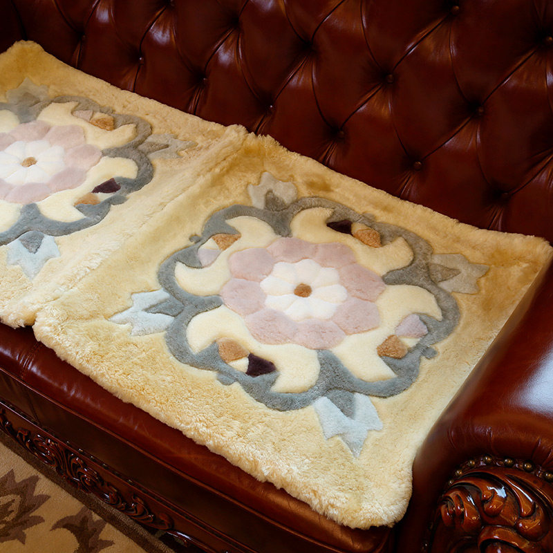 Lanmu wool sofa cushion single and double sheep fur one chair cushion thickened European winter cushion can be customized