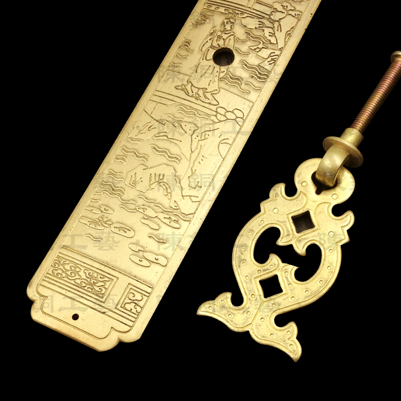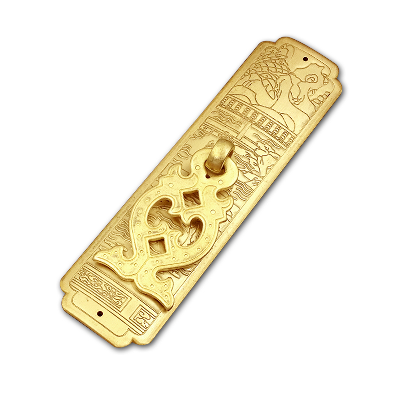Chinese antique pure copper brass wooden door golden pair door shoes wine book whole cabinet cabinet door handle buckle single hole