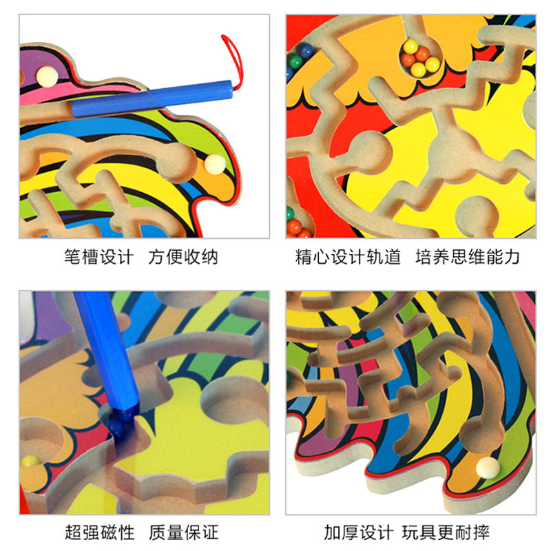 Children's educational wooden toys, wooden butterfly magnetic maze, magnetic pen maze, parent-child game 3