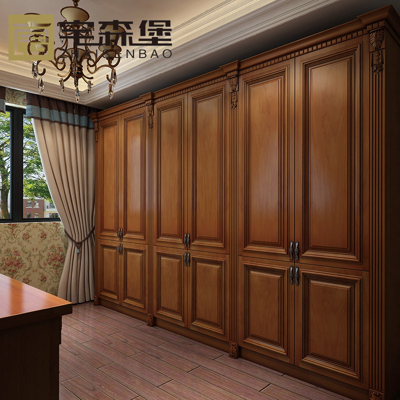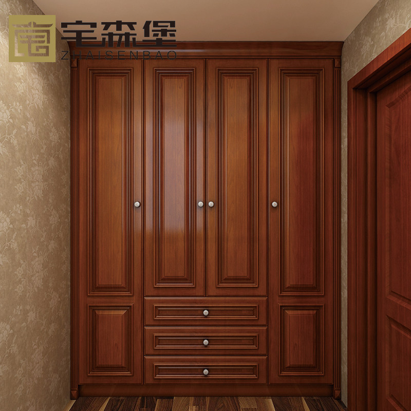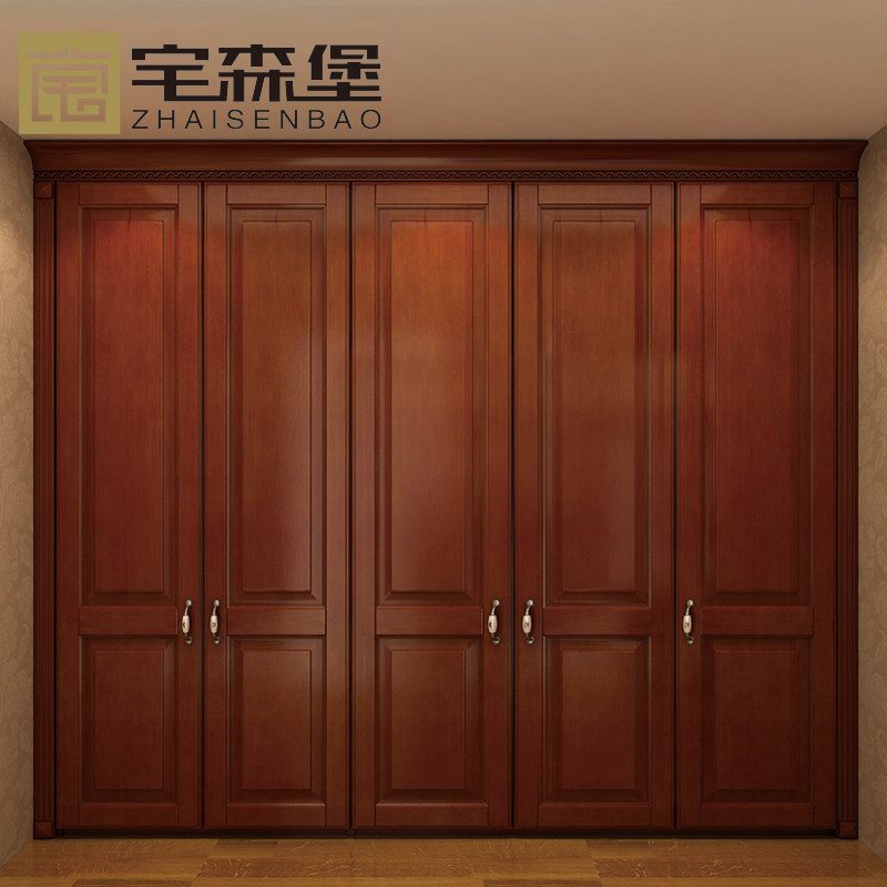 Custom Myanmar cherry wood flat door solid wood clothing pine wardrobe clothing American Red Oak Red cherry rosewood