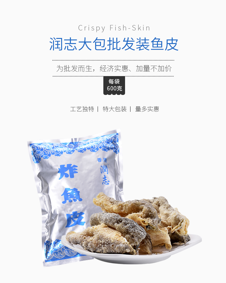 Runzhi crispy fish skin 600g seafood snack fried fish skin instant spicy snack Hong Kong hot pot food