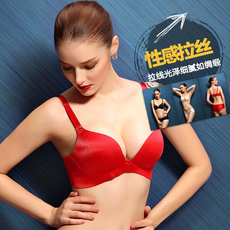 Godsa without steel ring gathering trace-free underwear drawn wire small chest underwear girl sexy thickening cup meat