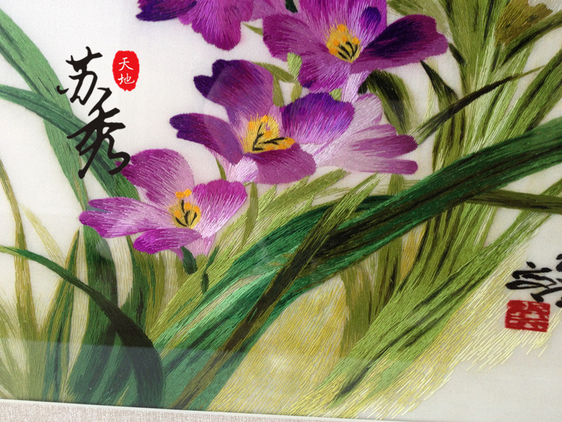 Suzhou Embroidery Suembroidery Finished Product Hung Painting Living Room Decoration Pure Handmade Sofa Wall Mural Orchid Bedroom