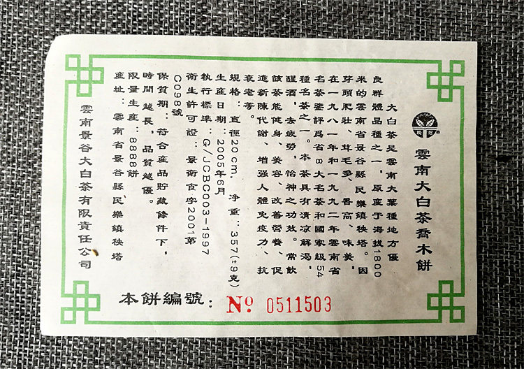 2005 Yunnan Dawhite Tea Joy Muppy Cream Tapu Tea 07 South Bridge Cup Silver Medal Limited Edition