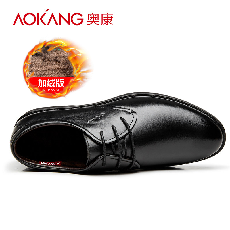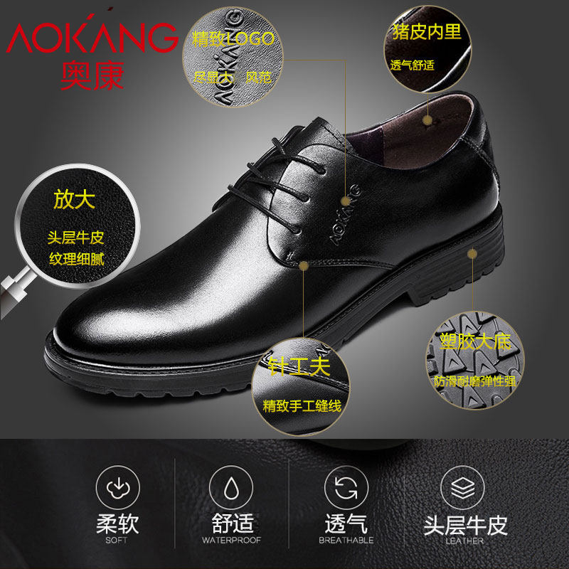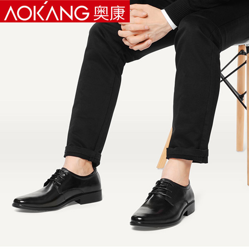 Aokang men's shoes autumn leather shoes men's formal wear men's black British breathable pointed toe business casual men's leather shoes