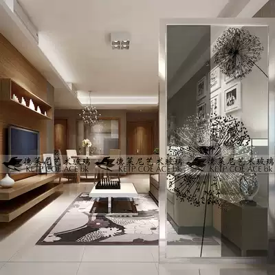 Art glass home screen partition Living room kitchen window Shoe cabinet aisle sliding door entry simple European style dandelion