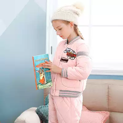 Children's pajamas with cotton thickened winter boys and girls Red Beans children flannel home clothing set coral velvet