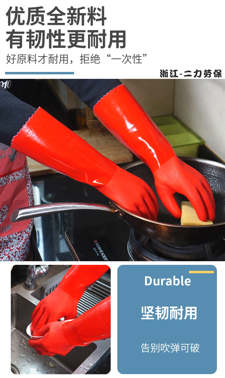 Thickened warm rubber waterproof gloves one piece velvet wash clothes wear-resistant plus plus fleece latex leather housework cleaning wash dishes in winter