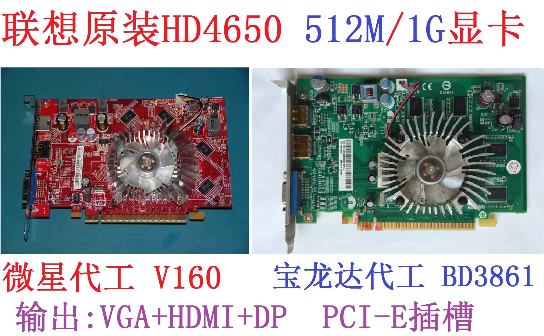 D33B65 Lenovo original PCI-E graphics card BD3861 HD4650 512M 1G MSI V160 DP HDMI
