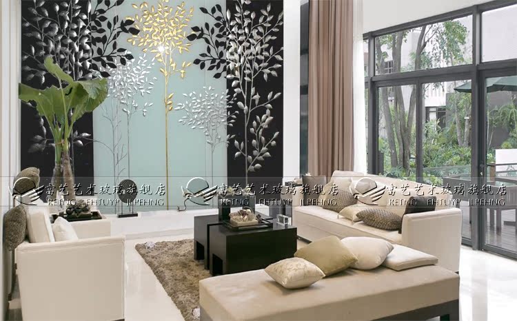 Modern Minimalist Style Art Glass Background Wall 3D Stereosensation Handcrafted Delicate Engraving Crafts Xuanguan Gold And Silver Trees