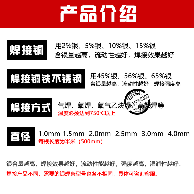 Silver electrode 2%5 %Refrigerator air conditioning copper pipe welding 255E%silver wire flat electrode copper-iron welding 2 0
