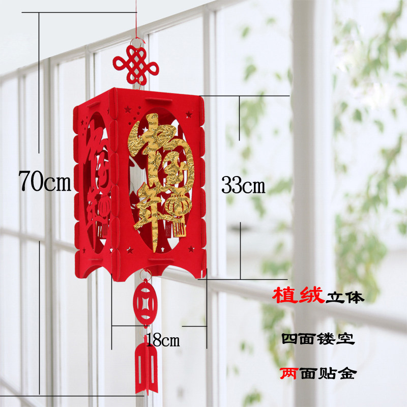 Three-dimensional lantern Spring Red blessing Spring Jinfu Spring color printing New Year Blessing Six-sided round lantern color printing God of Wealth blessing small square lamp Jinfu Gongxi Fatcai Small Blessing word small flower ball 23*50 Blessing word big flower ball 36*66 Flocking medium