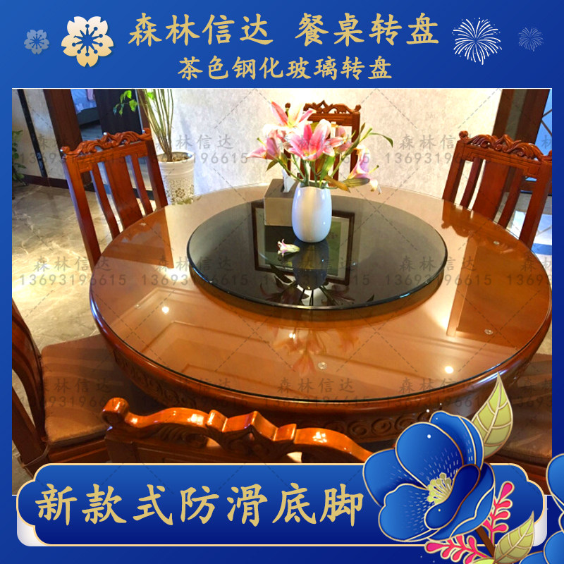 Beijing Spot Round Table Tempered Glass Turntable Dining Table High-end Tea Color Aluminum Base Table Rotary Table Round Home Transfer Table