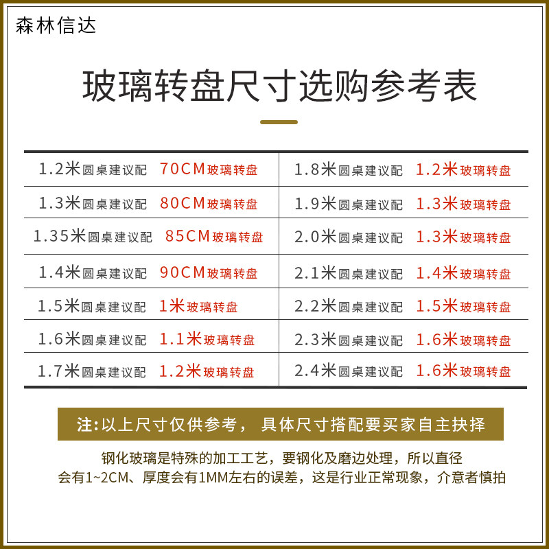 Diameter 70 cm 12mm thick diameter 80 cm 12mm thick diameter 85 cm 12mm thick diameter 90 cm 12mm thick diameter 1 m 12mm thick diameter