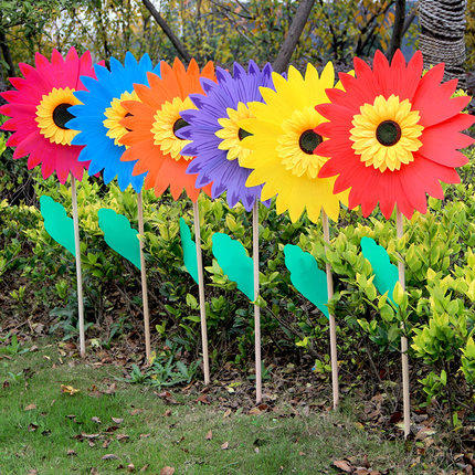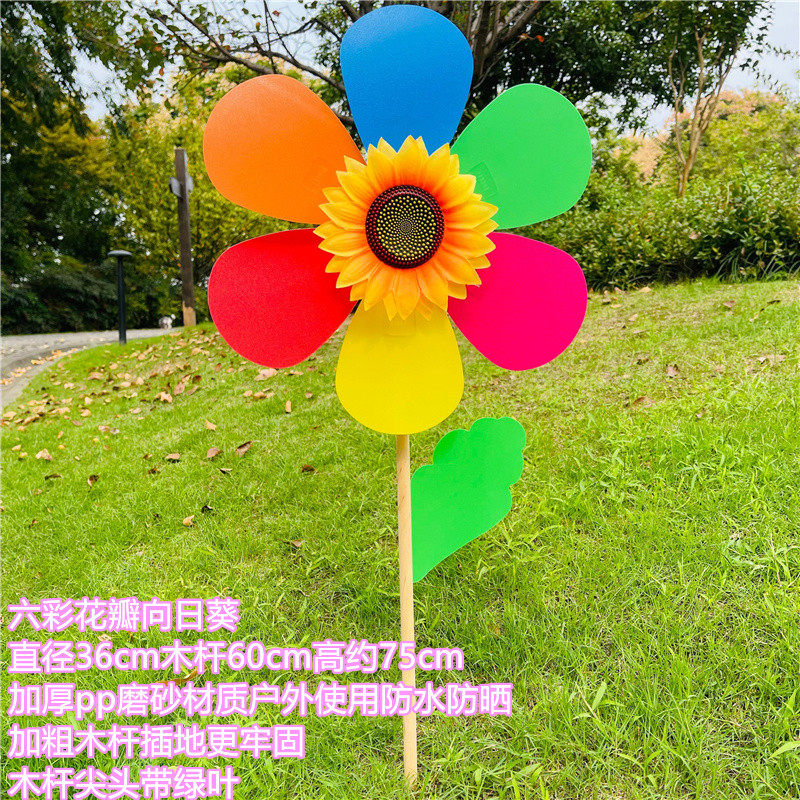 36cm Wooden Pole Sunflower Large Waterproof Windmill Outdoor Plug-in Sun Flowers Kindergarten Building Pan Scenic Spot Advertising Decoration-Taobao